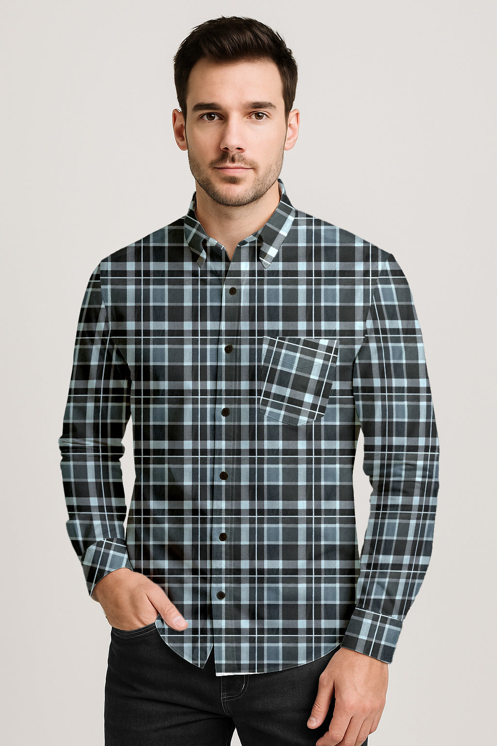 Long Sleeve Plaid Cotton Shirt – Button Down Checkered Casual Dress Shirt