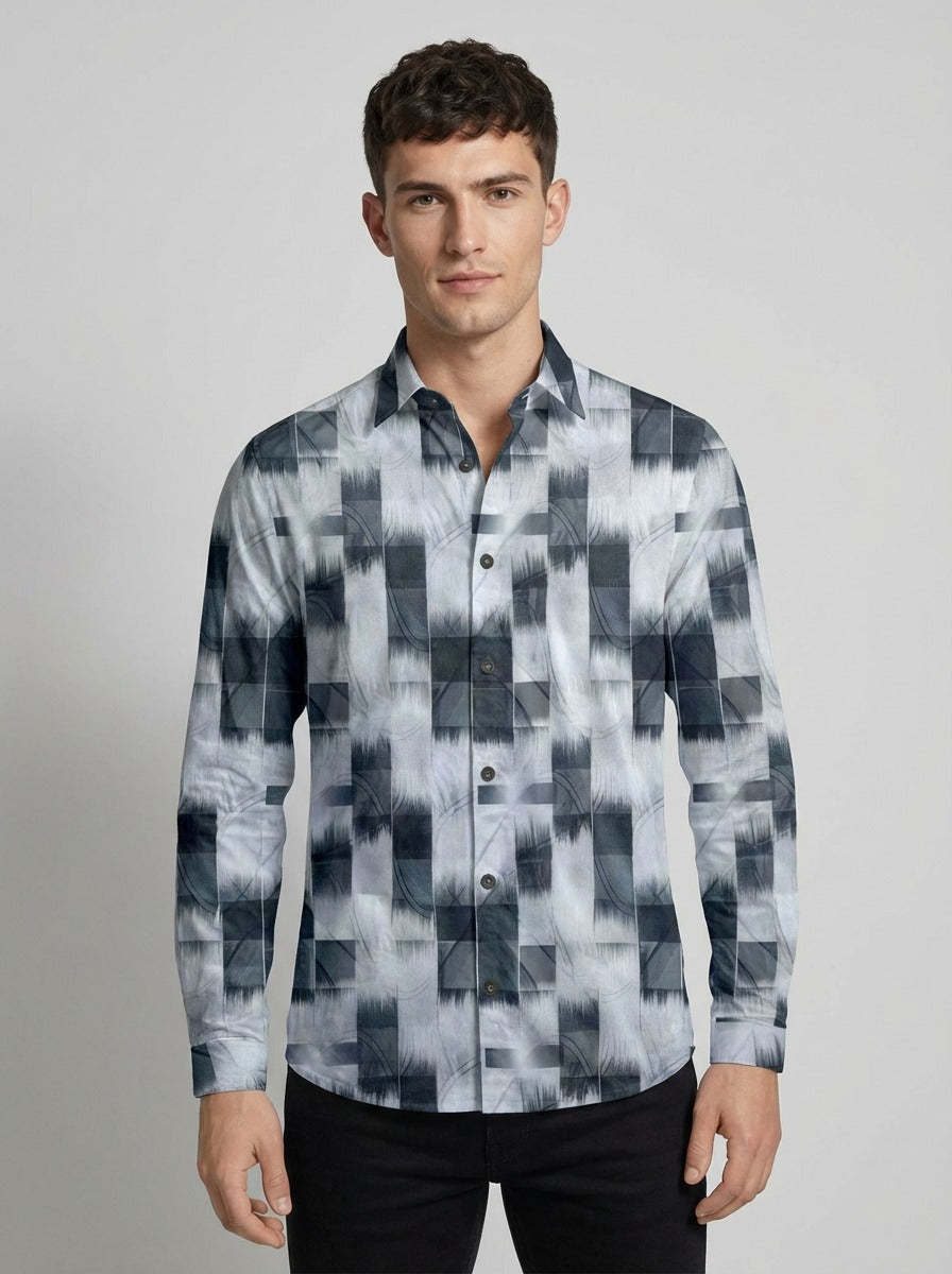 Men's Abstract Brushstroke Silk-Cotton Tailored Shirt