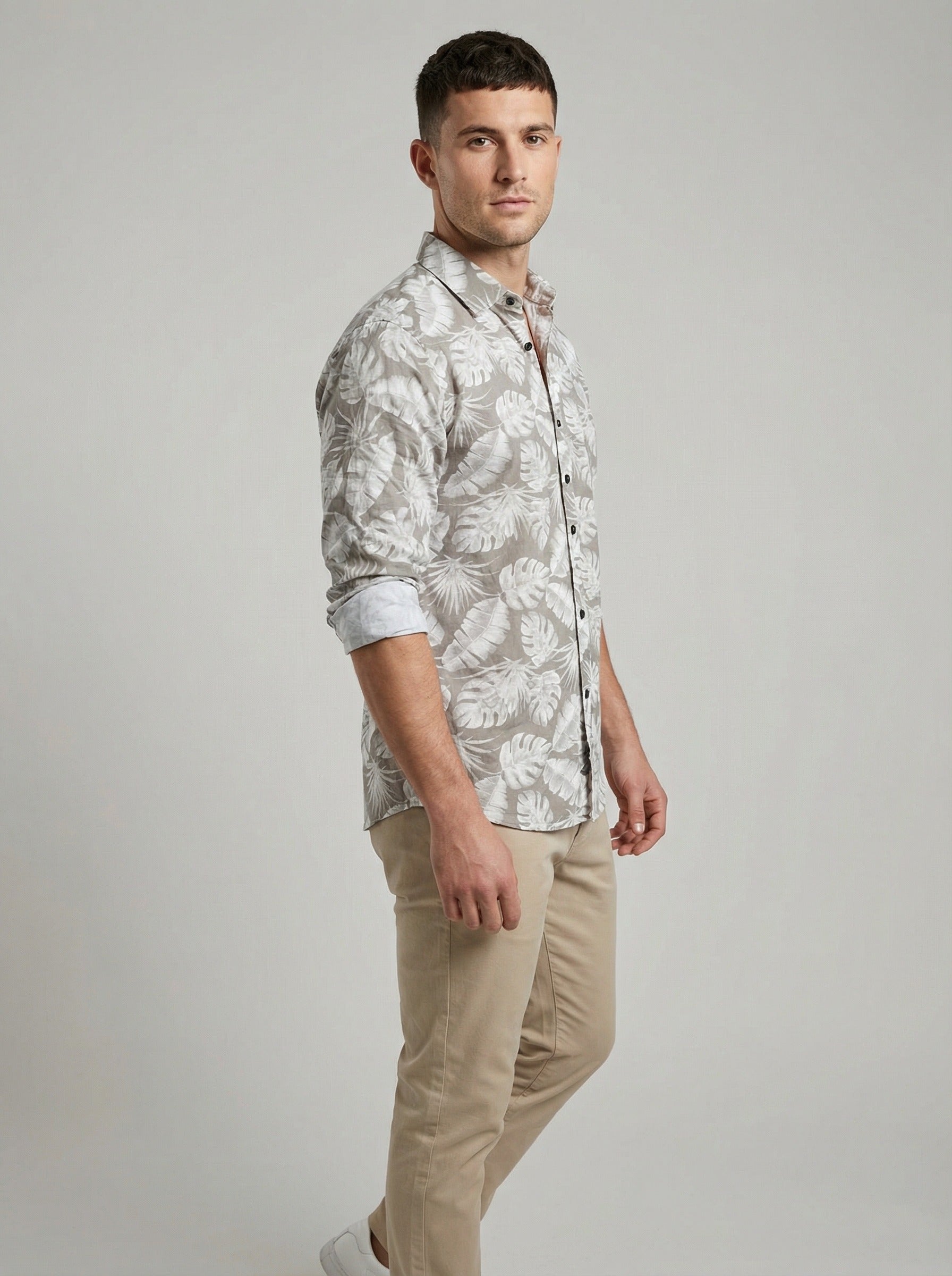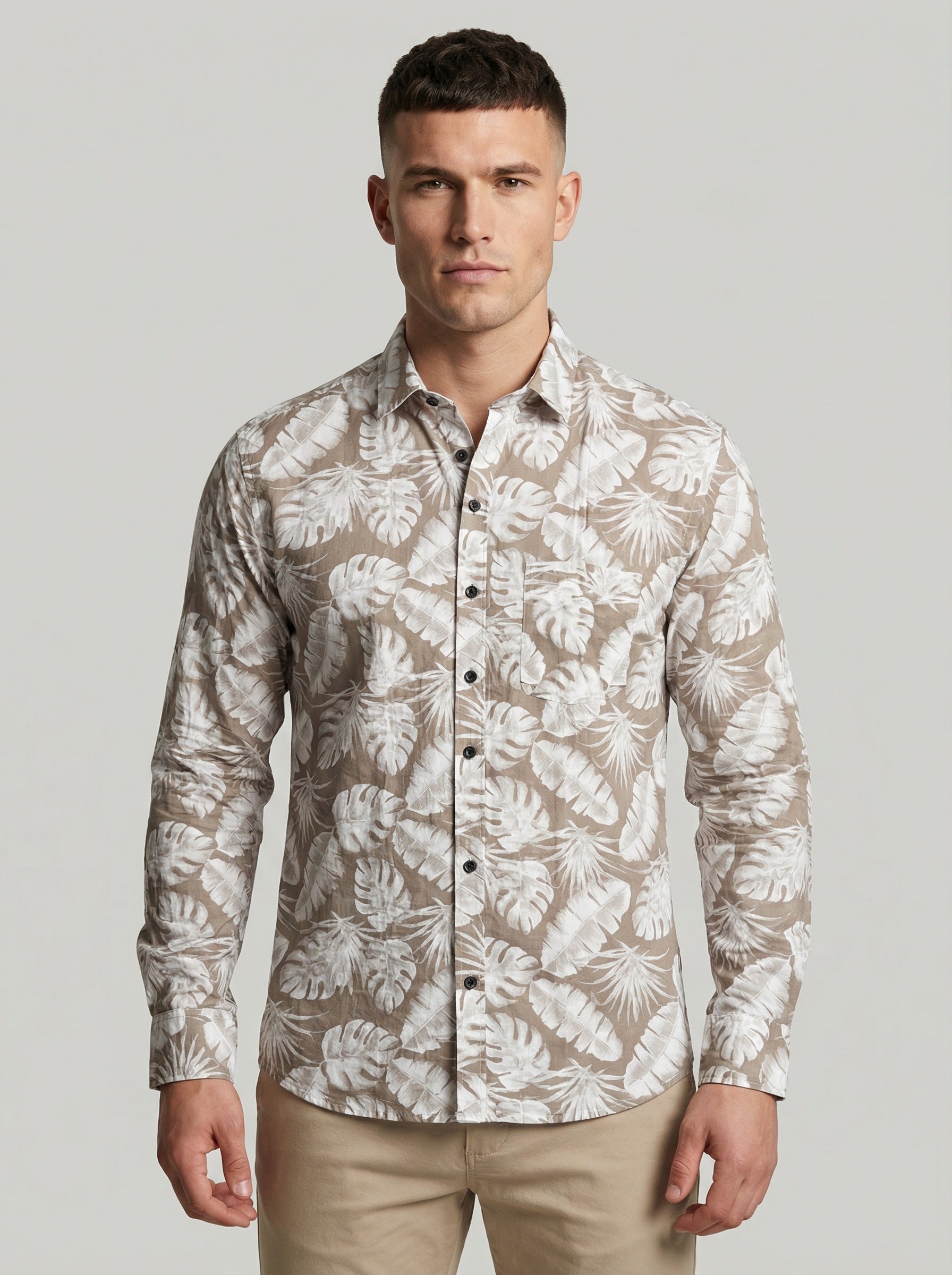 Whether you're strolling along the coast or enjoying a sunset dinner, this tropical print shirt is a versatile addition to any modern wardrobe. Pair it with linen trousers or casual shorts for the ultimate summer ensemble.