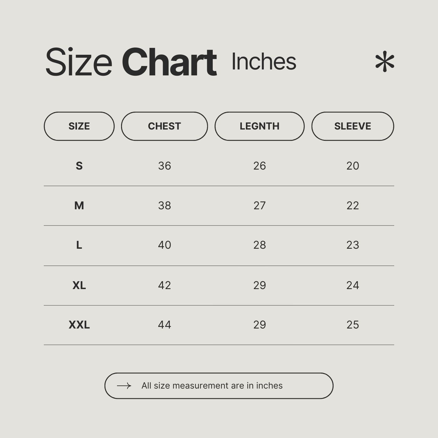 Chest (inches) |