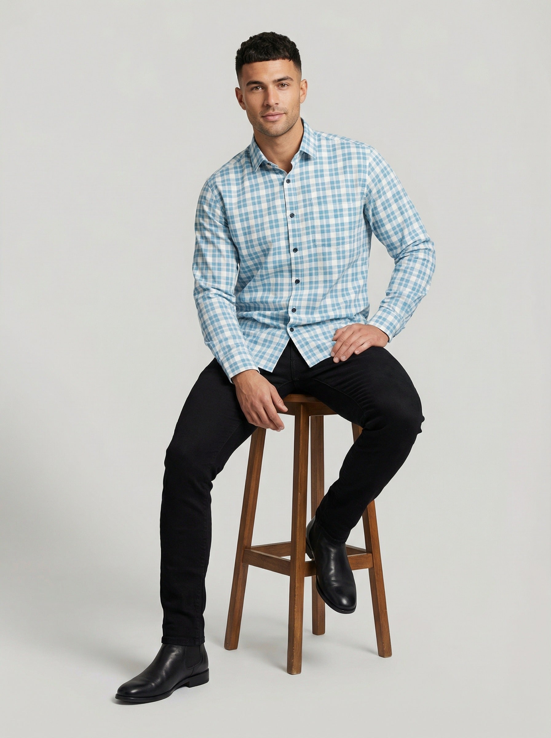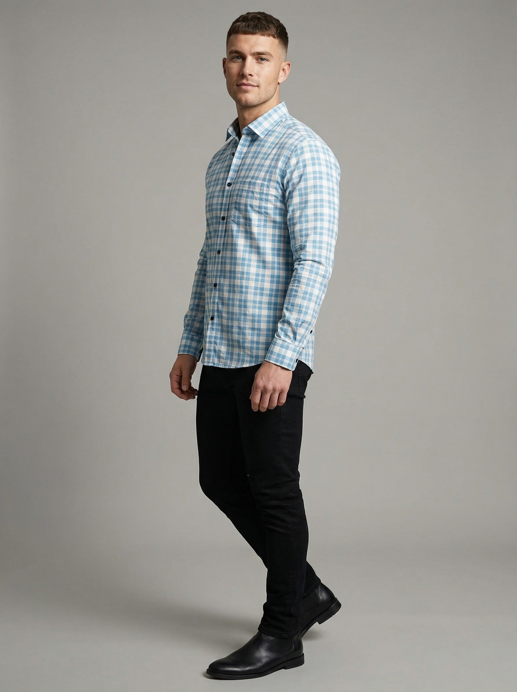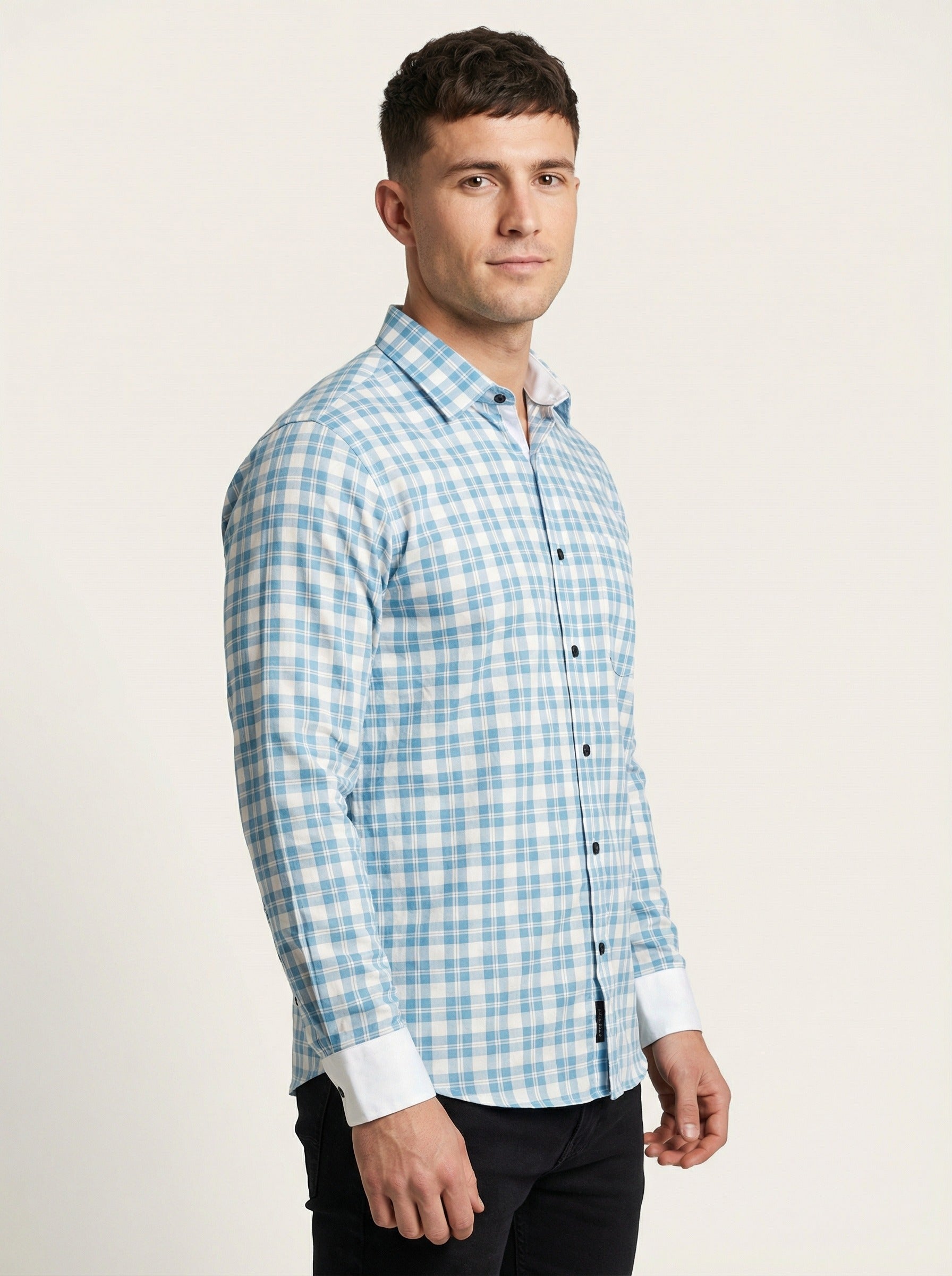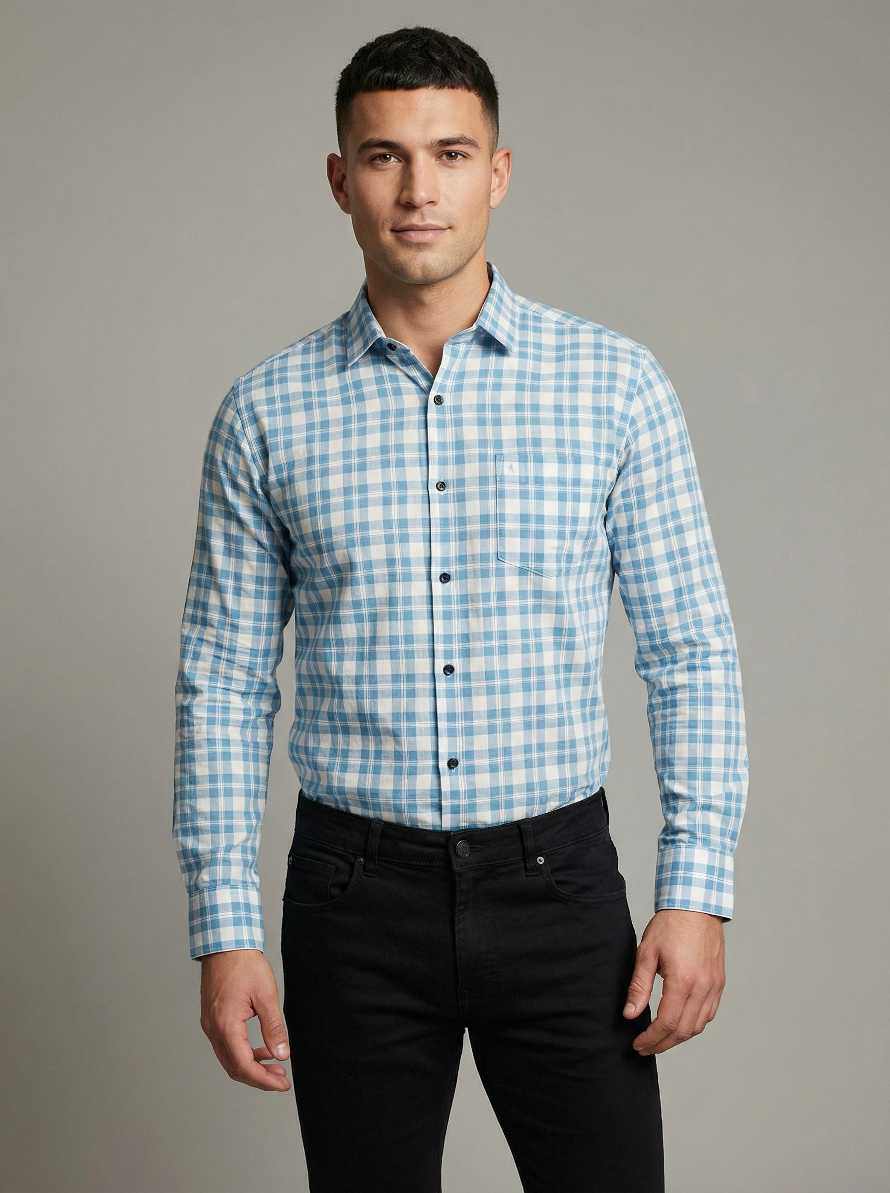 Classic Design: The timeless blue and white gingham pattern is a staple for any modern man's closet.