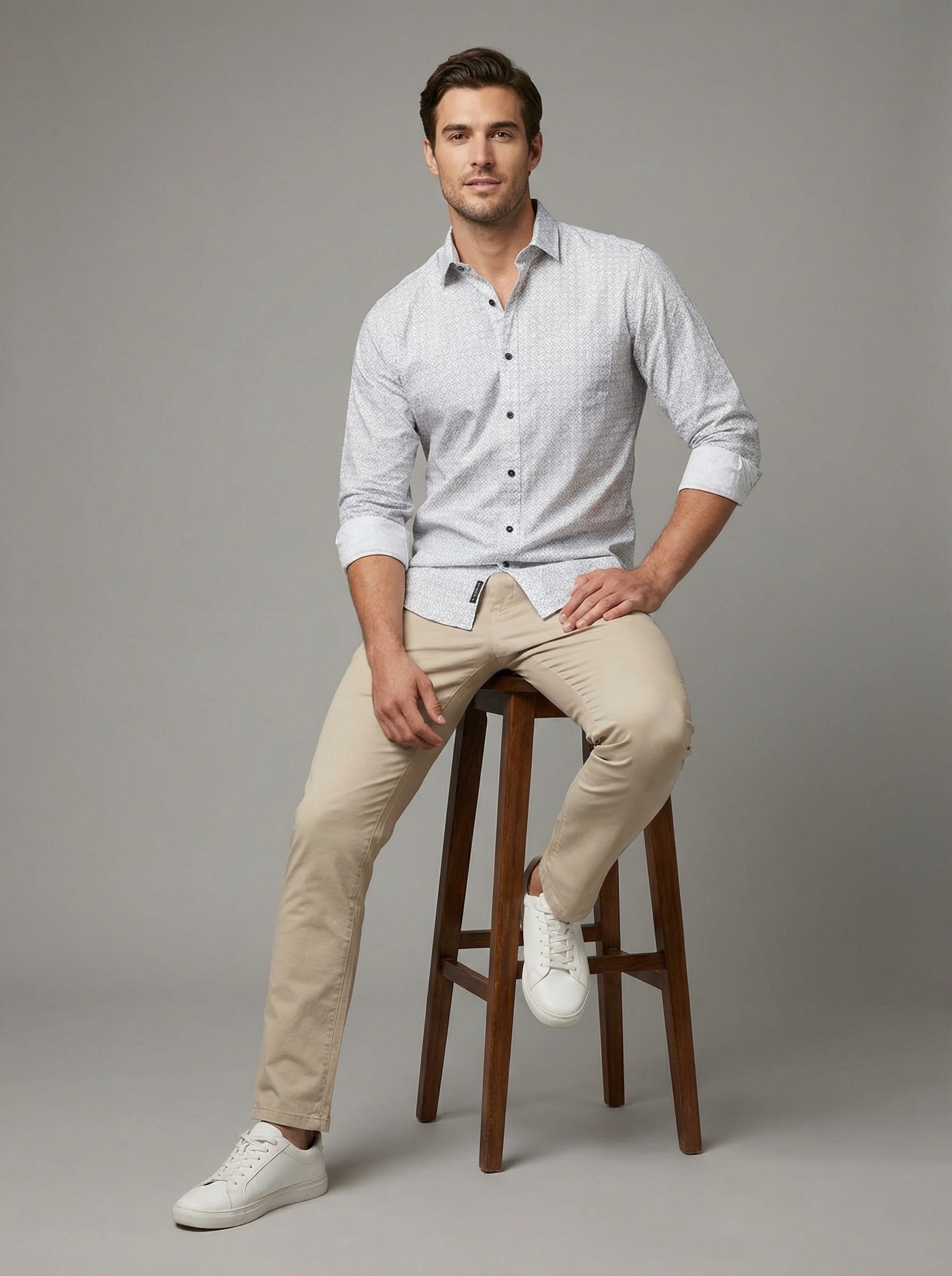 Refined Pattern: The sophisticated geometric micro-print offers a textured look that stands out without being overwhelming.