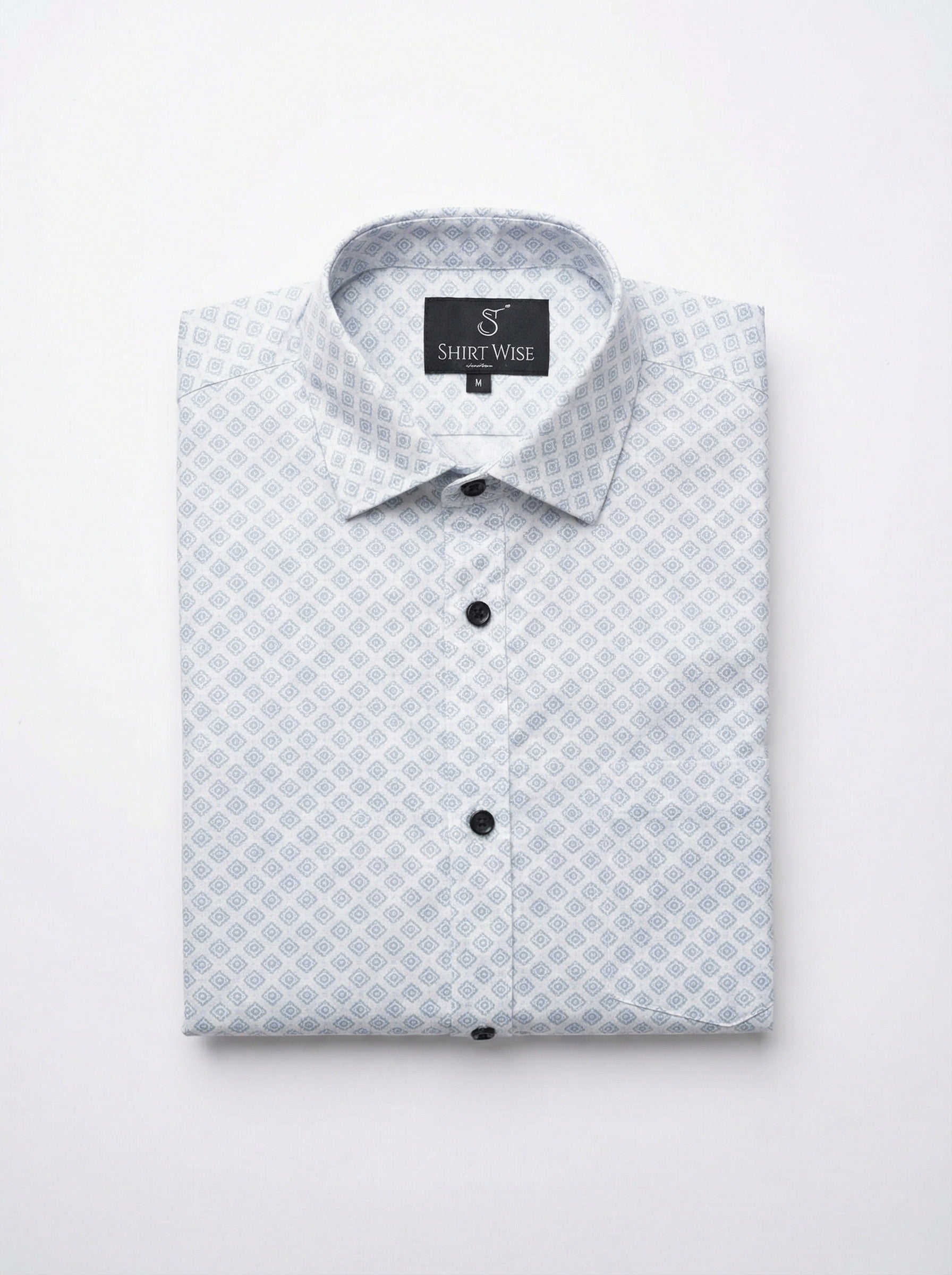 Introducing the SHOWFINE Men's Geometric Micro-Print Dress Shirt, a perfect blend of modern style and classic sophistication. This shirt features an intricate light blue and white tile pattern that adds a subtle touch of elegance to any ensemble. Crafted with attention to detail, it transitions effortlessly from the boardroom to a dinner date.