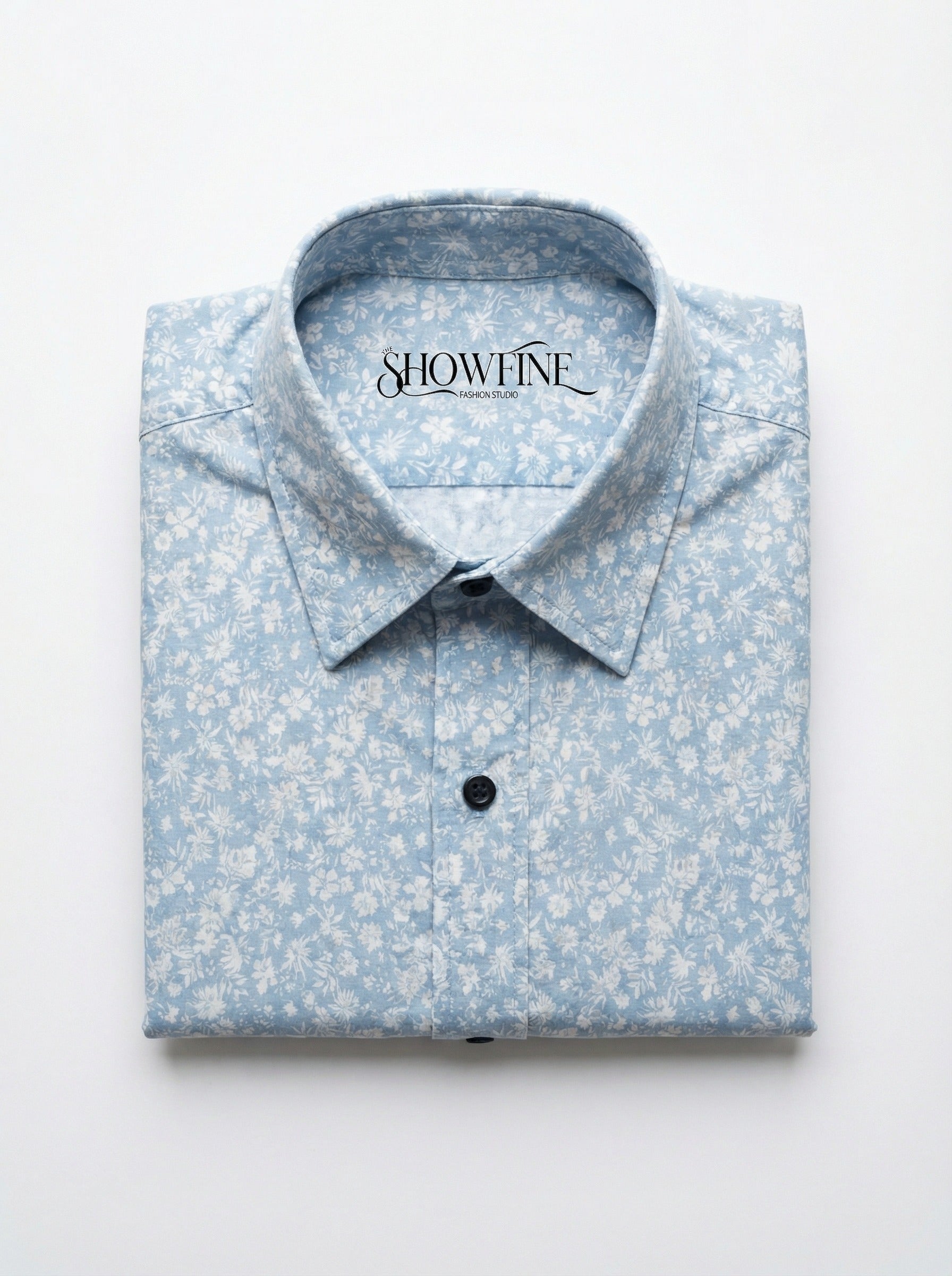 Men's Light Blue Subtle Floral Print Long Sleeve Button-Down Shirt