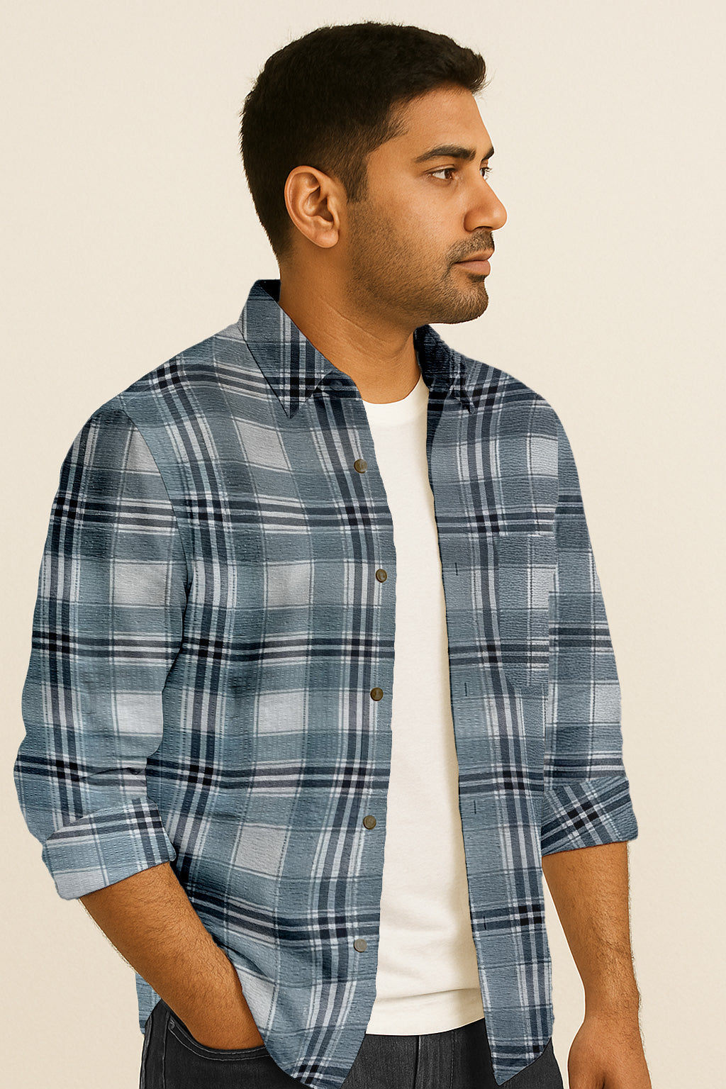 Men's Long Sleeve Plaid Shirt – Textured Cotton Blend Seersucker Button Down for Casual Everyday Wear