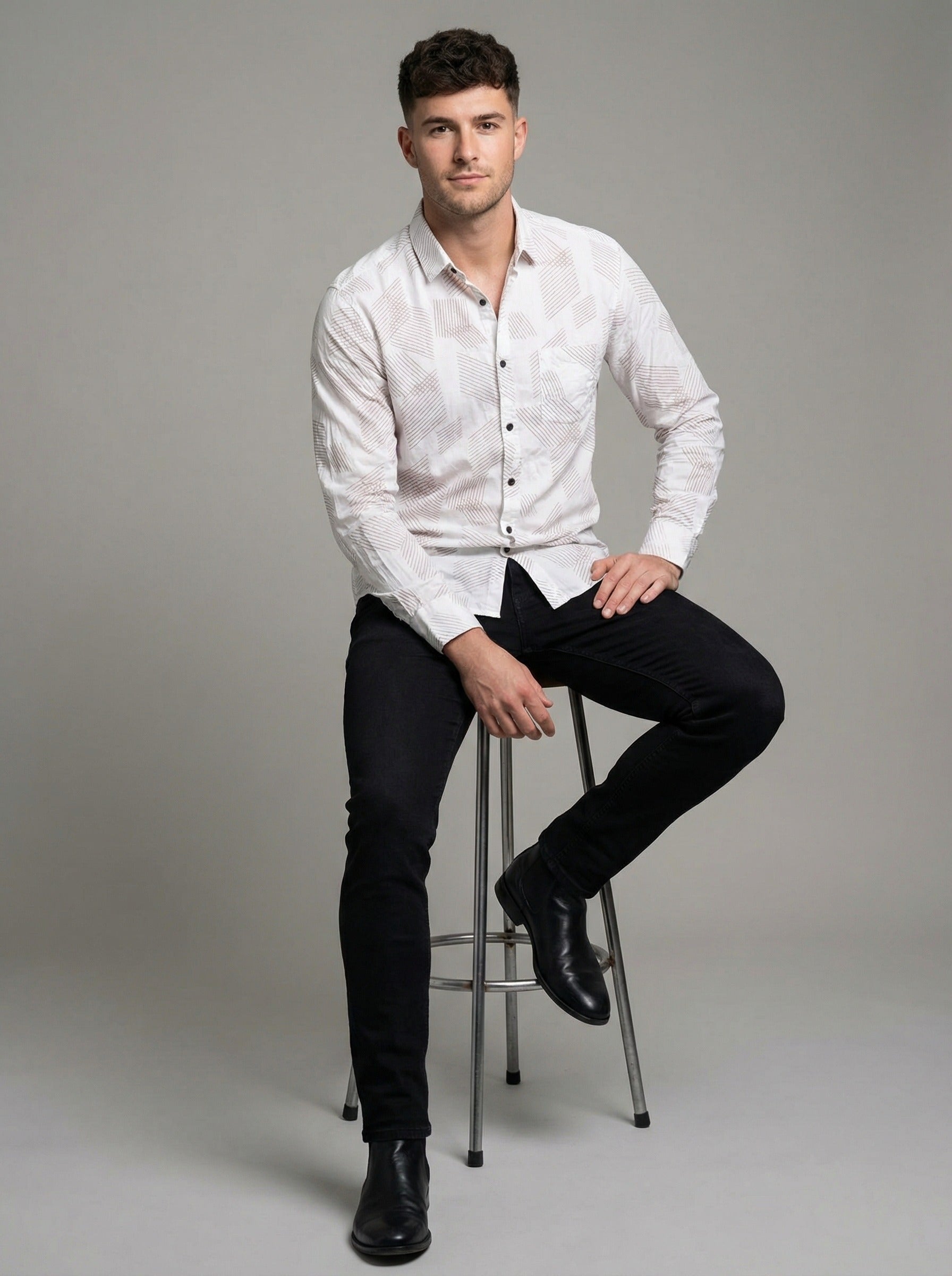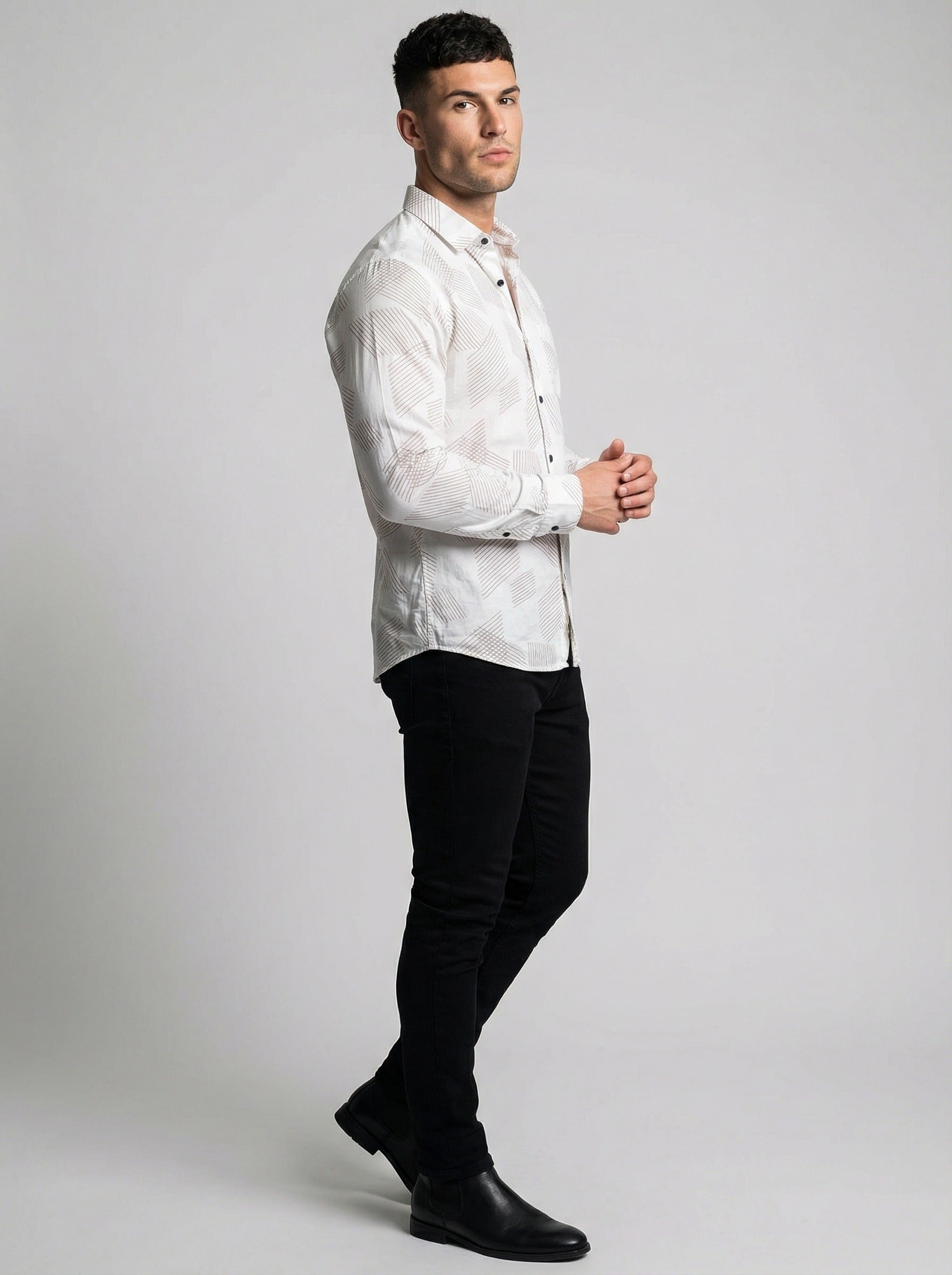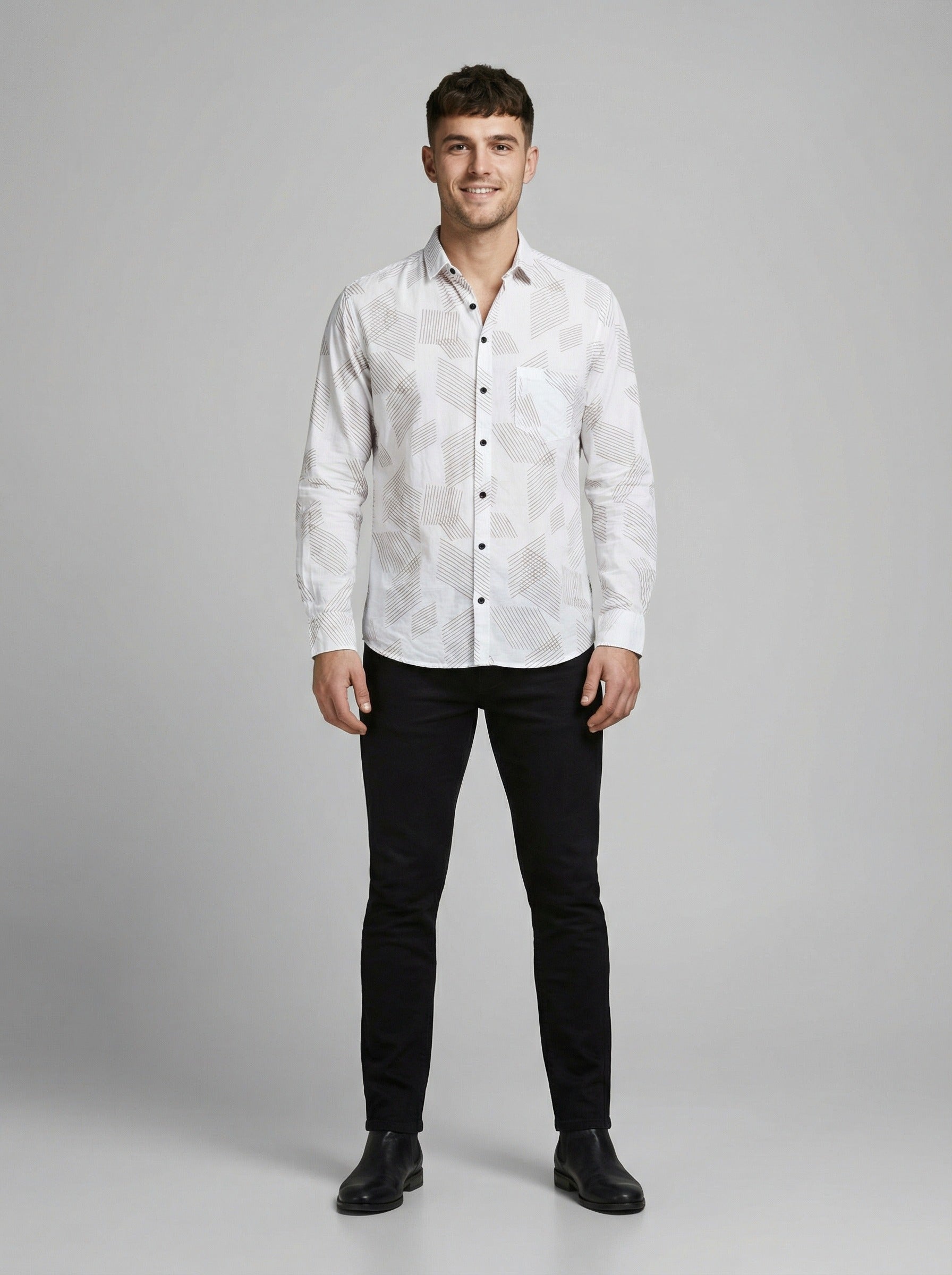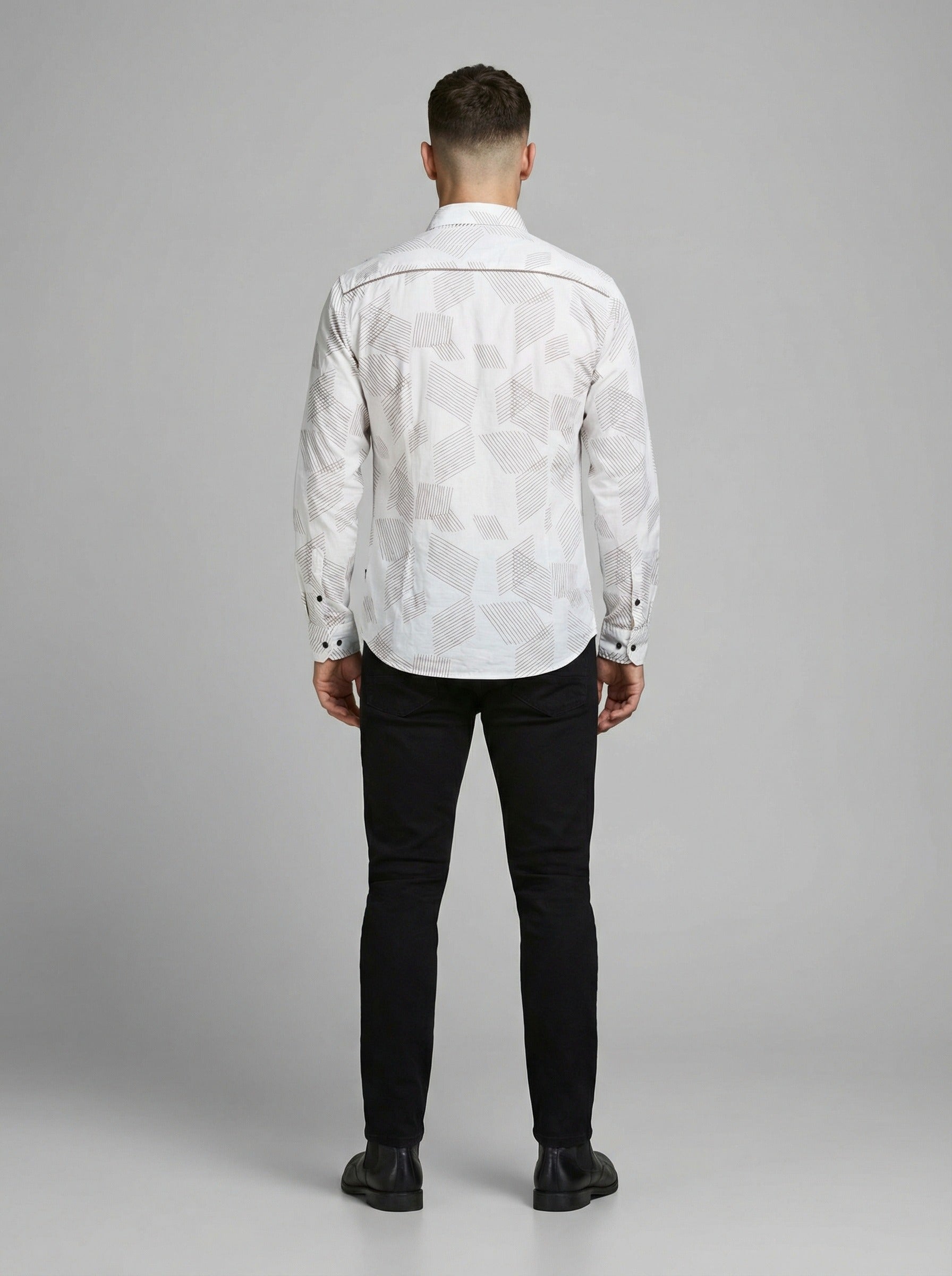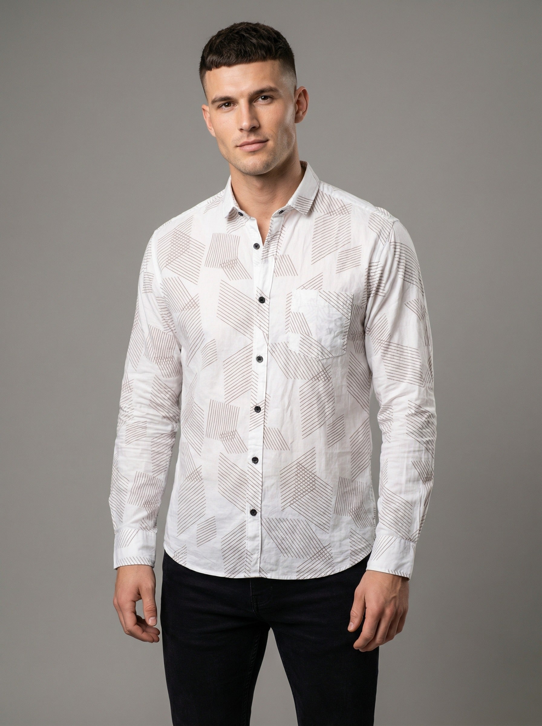 Men's Modern Geometric Line Pattern Long Sleeve Button-Down Shirt