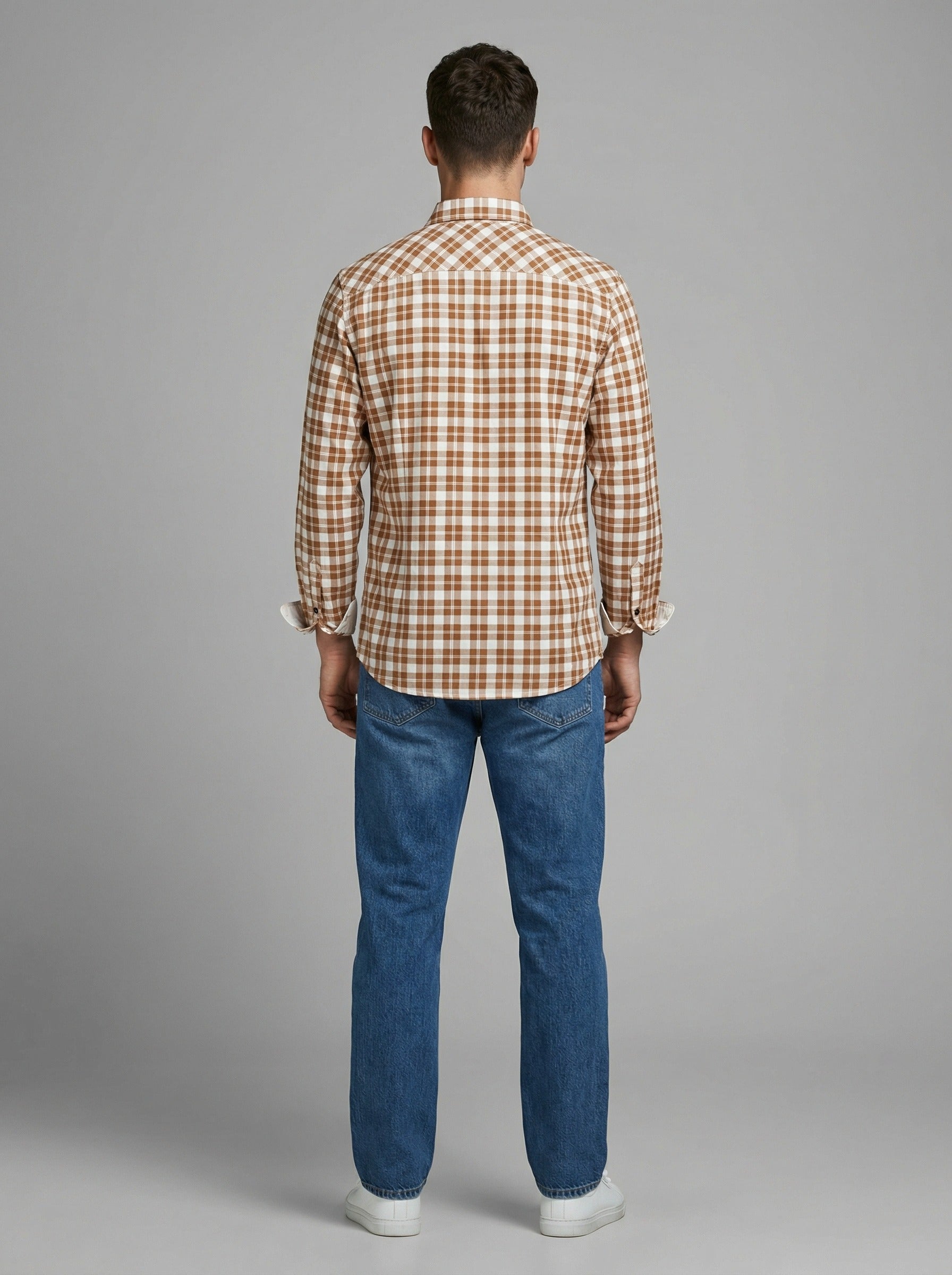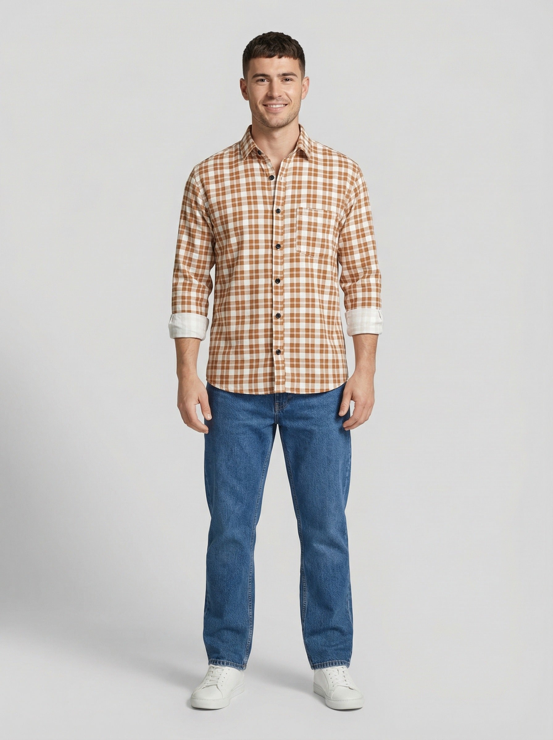Upgrade your wardrobe with this Men's Orange and White Gingham Checkered Button-Down Shirt. Designed for versatility, this shirt features a timeless small-check pattern that transitions perfectly from the office to the weekend. The breathable fabric ensures all-day comfort, while the structured collar and button-down front provide a crisp, polished look.