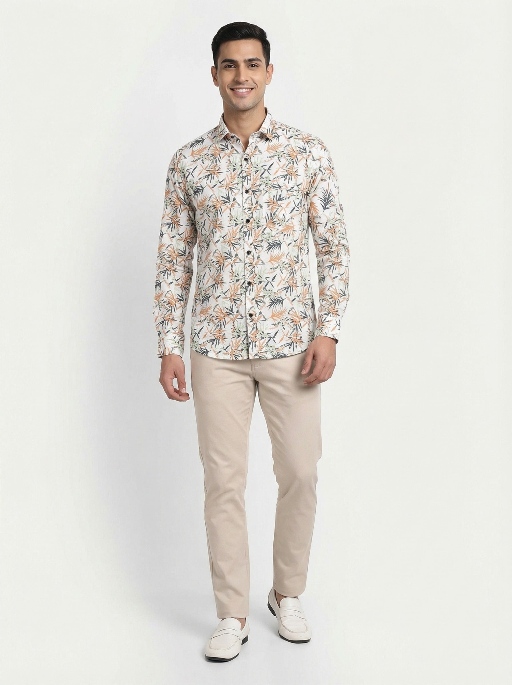 Elevate your summer wardrobe with our Men's Tropical Palm Leaf Print Long Sleeve Casual Shirt. This shirt is designed for the modern man who values both style and comfort. Featuring a vibrant all-over tropical leaf print in shades of blue and orange on a crisp white background, it's the perfect choice for beach getaways, summer parties, or casual weekend outings.